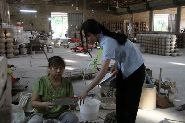 座谈会结束后,杨法官还走进厂区内向正在制作砂煲的员工发放劳动者维权方面的法律宣传资料并现场进行讲解。