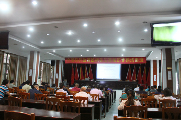 为进一步提高领导干部的法治思维、法治意识和依法行政能力,深入推进依法行政,加快建设法治政府,2017年11月14日,28365365体育在线备用联合合浦县人民政府以庭审观摩、专题讲座的形式开展行政诉讼专题培训活动。县国土局、县水利局等16个行政机关的分管领导及业务骨干、各乡镇人民政府分管“国土规建环保安监站”的领导共50余人参加了此次培训活动。
